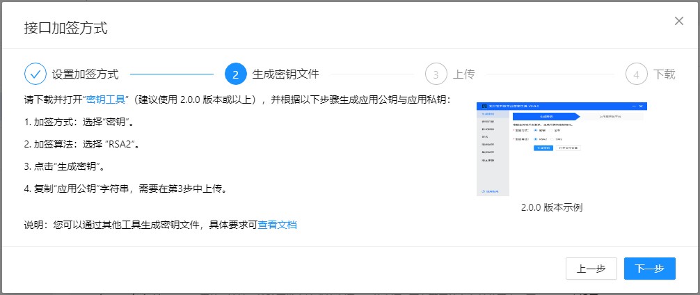 4.进入加签配置页面,加签方式选择 密钥(普遍适用) 方式即可,按步骤操作进入下一步。