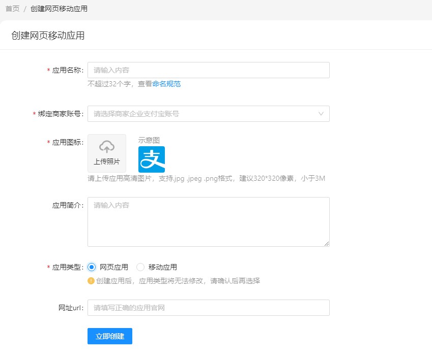 ⑵请确保您的支付宝商家开发者中心,https://openhome.alipay.com/develop/manage 控制台-网页移动应用中,申请的支付已经通过审核。