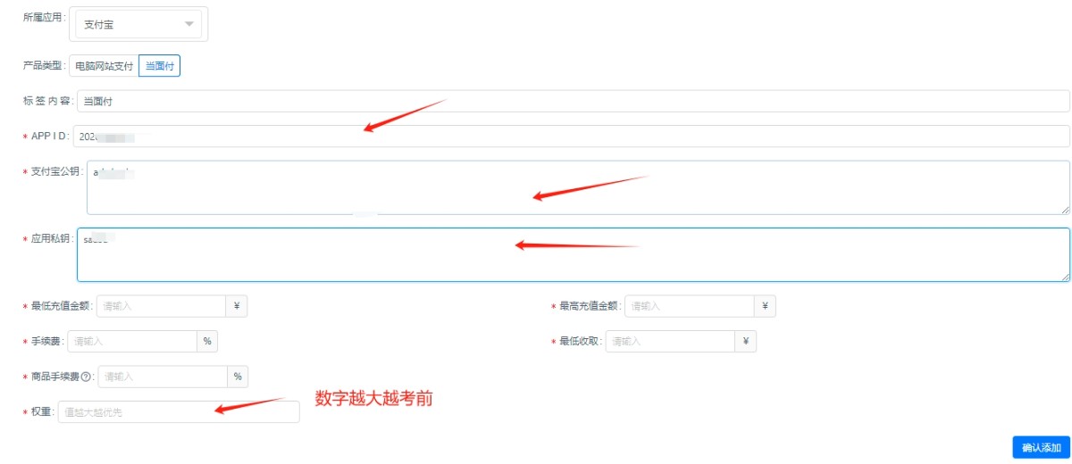 ⑴请确保您的支付宝商家中心https://b.alipay.com/page/product-workspace/all-product 申请的支付权限已开通。
