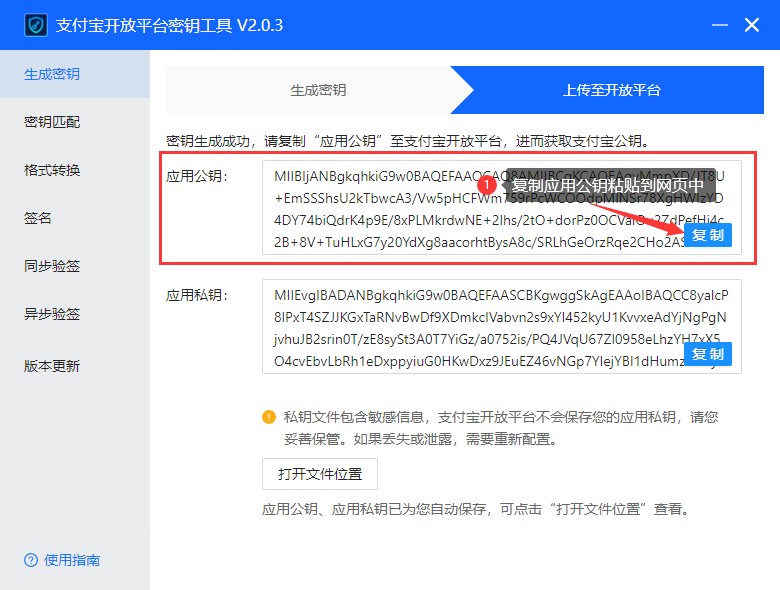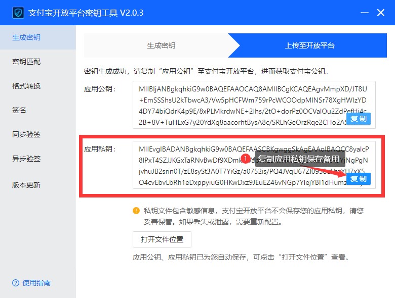 9.复制[支付宝开放平台密钥工具]中的 应用私钥 保存备用